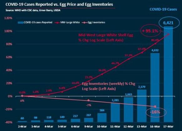 Moscoqiuri感嘆道:“新冠肺炎Covid-19對美國的影響是前所未見的,從來沒見過如此的市場景象;2015年禽流感的爆發(fā),對市場的影響僅僅限于供應(yīng)端,可這次的新冠疫情,就好像摁下了一個開關(guān),突然之間整個國家都在搶購雞蛋和生活物資?!?br>