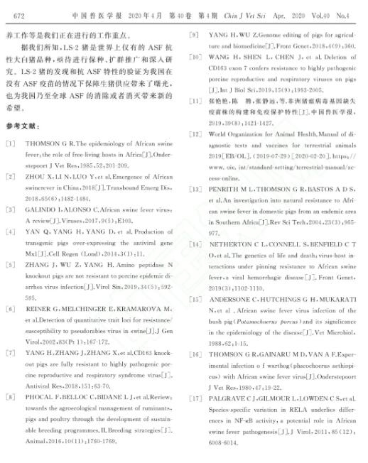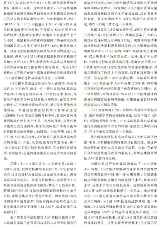 LS-2豬的發(fā)現(xiàn)和抗ASF特性的驗證為我國在沒有ASF疫苗的情況下保障生豬供應帶來了曙光,也為我國乃至全球ASF的消除或者消滅帶來新的希望。
