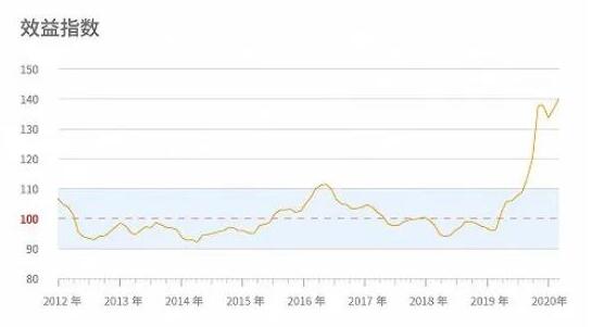 據(jù)農(nóng)業(yè)農(nóng)村部統(tǒng)計(jì)數(shù)據(jù),2月豬肉集貿(mào)市場(chǎng)價(jià)格為58.89元/公斤。從盈利水平來看, 2020年2月我國(guó)生豬產(chǎn)業(yè)效益指數(shù)增至139.77,不僅顯著高于100的盈虧均衡點(diǎn),也高于今年1月份(136.15)的水平。不過,受新冠疫情的影響,生豬產(chǎn)業(yè)發(fā)展環(huán)境指數(shù)較1月份有所回落。