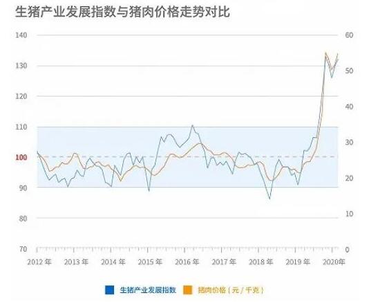 界面商學(xué)院聯(lián)合中國(guó)農(nóng)業(yè)科學(xué)院農(nóng)業(yè)信息研究所農(nóng)業(yè)產(chǎn)業(yè)安全研究團(tuán)隊(duì)編制的“生豬產(chǎn)業(yè)發(fā)展指數(shù)”,2020年2月為132.88,連續(xù)兩個(gè)月小幅上行,逼近2019年10月的高點(diǎn)133.62。從歷史數(shù)據(jù)來看,生豬產(chǎn)業(yè)發(fā)展指數(shù)通常比豬肉市場(chǎng)價(jià)格變化趨勢(shì)先行1~3個(gè)月。