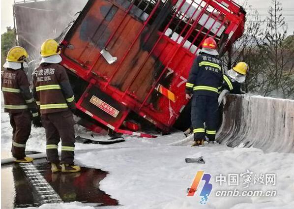 4月6日,凌晨4點(diǎn)50分左右,慈溪市消防救援大隊(duì)接到市民報(bào)警,稱沈海高速公路靠近慈溪觀海衛(wèi)收費(fèi)站處有一輛大貨車起火。