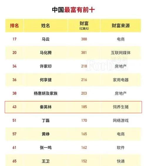 中國內(nèi)地在今年的榜單成績令人矚目,有389位富豪上榜,且財富總額達1.2萬億美元。其中,阿里巴巴創(chuàng)始人馬云位列榜單第17位,也是最富有的中國人,身家高達388億美元。牧原集團秦英林位列榜單第43位,身家高達185億美元,首次擠入中國最富有前十。另新希望劉永好家族也在胡潤全球百強企業(yè)家財富增長榜中!我們可以看到,農(nóng)業(yè)畜牧板塊位列其中,生豬養(yǎng)殖業(yè)也是徹底“火”了一把!