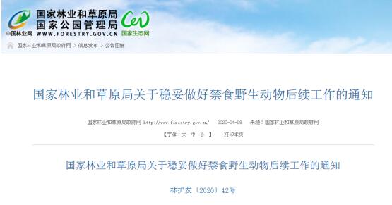 為進一步貫徹落實《全國人民代表大會常務(wù)委員會關(guān)于全面禁止非法野生動物交易、革除濫食野生動物陋習(xí)、切實保障人民群眾生命健康安全的決定》(以下簡稱《決定》),按照國務(wù)院有關(guān)要求,結(jié)合各地執(zhí)行我局林護發(fā)〔2020〕22號文件進展情況,經(jīng)研究,并商農(nóng)業(yè)農(nóng)村部,現(xiàn)就穩(wěn)妥做好禁食野生動物后續(xù)工作有關(guān)要求通知如下: