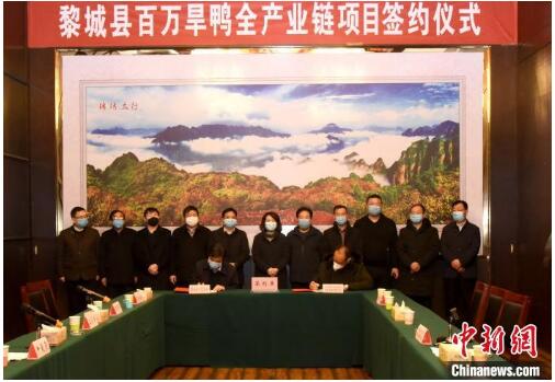 據(jù)介紹,黎城百萬旱鴨全產(chǎn)業(yè)鏈項目計劃用4年時間分兩期打造集種鴨、商品鴨、屠宰、飼料、循環(huán)農(nóng)業(yè)等于一體的旱鴨養(yǎng)殖全產(chǎn)業(yè)鏈條,不斷培育、發(fā)展、壯大黎城縣旱鴨全產(chǎn)業(yè)鏈產(chǎn)業(yè)集群。其中,一期工程計劃投資2.53億元,主要建設存欄100萬只的標準化種鴨養(yǎng)殖場,配套建設年產(chǎn)飼料40萬噸、玉米存儲7.5萬噸的飼料加工廠,在全縣范圍內(nèi)打造4至5個養(yǎng)殖示范基地;二期工程投資4.2億元,布局全縣10個鄉(xiāng)鎮(zhèn)(中心),主要建設商品鴨屠宰場、商品鴨苗孵化場、商品鴨養(yǎng)殖棚舍和循環(huán)農(nóng)業(yè)莊園,輻射帶動羽絨制品、熟食、寵物食品、鴨系列保健產(chǎn)品加工、動物油脂加工、有機肥項目、包裝材料、血制品、冷鏈物流等產(chǎn)業(yè)。實現(xiàn)商品鴨存欄600萬只,年孵化鴨苗1.5億羽,年屠宰商品鴨4200萬只。