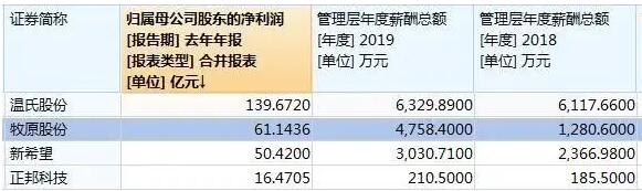 最慘的管理層是正邦科技,與前述三家公司一家也是民營企業(yè),2019年利潤增幅達751%,凈利潤規(guī)模突破16億元。