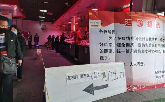 豬肉大廳南門進,北門出,單向行駛,要求互相間隔2米,大廳內(nèi)最高人流300人。