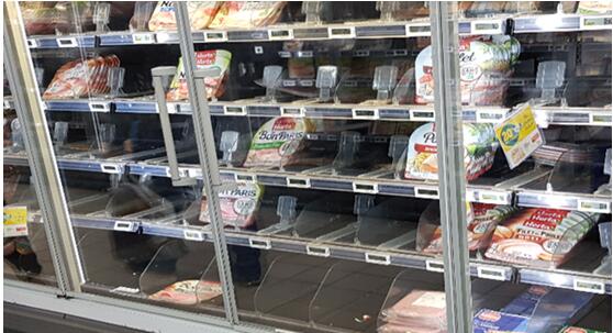 3月17日:一家法國超市的火腿貨架