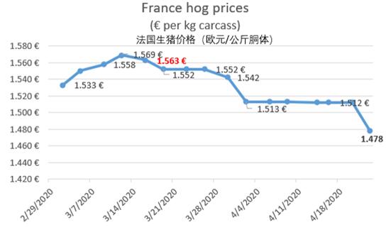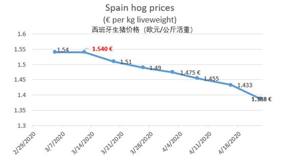 自Covid-19危機爆發(fā)以來,3月15日(西班牙開始封鎖)至4月23日,西班牙生豬價格下降了11.2%。西班牙是重要的豬肉出口國,也是歐洲第一個向中國出口豬肉的國家。