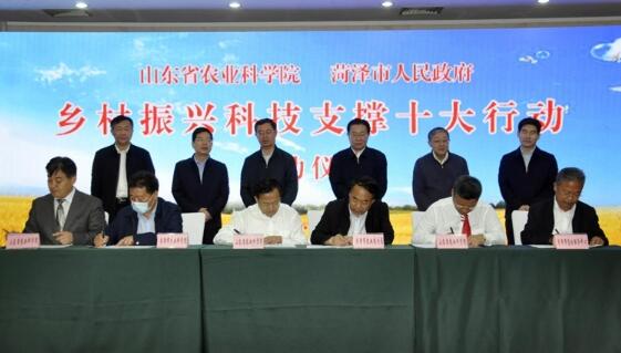 5月8日,省農(nóng)業(yè)科學(xué)院與菏澤市政府聯(lián)合實施的鄉(xiāng)村振興科技支撐十大行動正式啟動。省農(nóng)業(yè)農(nóng)村廳一級巡視員王登啟,省農(nóng)業(yè)科學(xué)院黨委書記李長勝,省農(nóng)業(yè)科學(xué)院黨委副書記、院長萬書波,市委副書記、市長陳平,市委常委、常務(wù)副市長王磊參加啟動儀式。市政府副秘書長劉蕓主持啟動儀式。