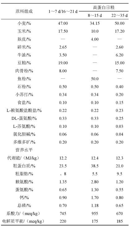 表1試驗(yàn)日糧原料組成及營養(yǎng)水平分析