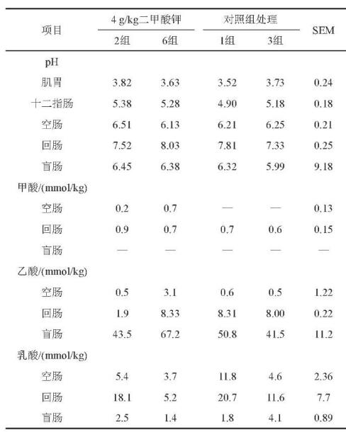 2.3 二甲酸鉀對(duì)感染壞死性腸炎肉雞組織pH和短鏈脂肪酸含量的影響