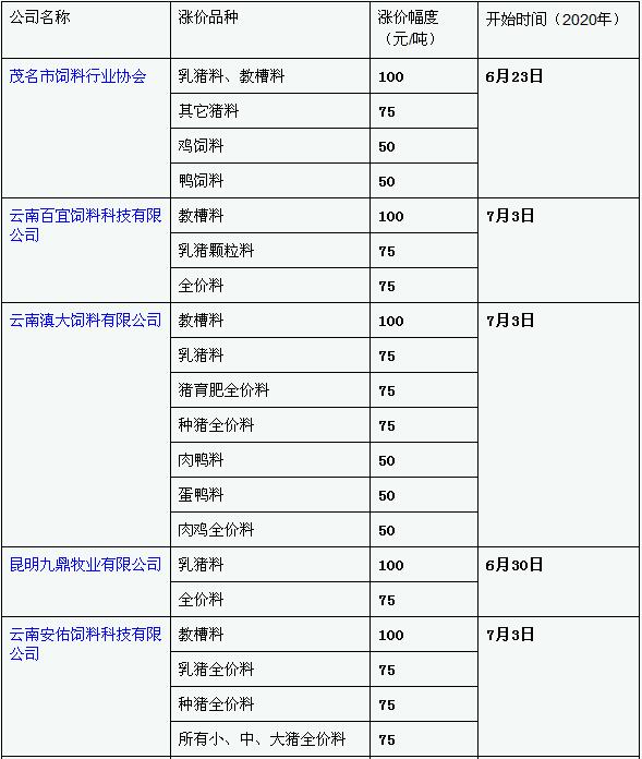 由于近期麩皮、面粉、碎米、米糠等原料上漲,玉米價格更是一路高漲,加之7月1開始啟用無抗配方,雙重疊加影響成本上升,通威、茂名等企業(yè)在重壓下為了保證質(zhì)量,紛紛上調(diào)了飼料價格: