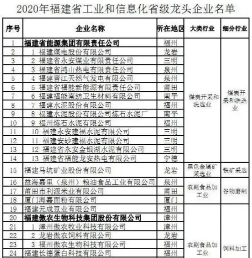 ??日前,福建省工業(yè)和信息化廳發(fā)布了《關(guān)于發(fā)布2020年福建省工業(yè)和信息化省級龍頭企業(yè)名單的通知》,福建傲農(nóng)生物科技集團(tuán)股份有限公司再次入選“2020年福建省工業(yè)和信息化省級龍頭企業(yè)”名單,集團(tuán)旗下全資子公司漳州傲農(nóng)、龍巖傲農(nóng)、福州傲農(nóng)同時入選。