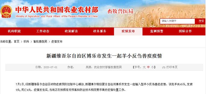 新疆維吾爾自治區(qū)博樂市發(fā)生一起羊小反芻獸疫疫情