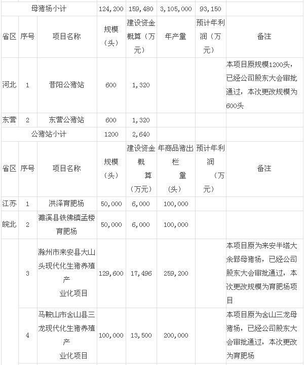 全部達(dá)產(chǎn)后預(yù)計(jì)可形成12.42萬頭母豬產(chǎn)能,年出欄約310.5萬頭生豬的生產(chǎn)能力,預(yù)計(jì)年實(shí)現(xiàn)利潤9.32億元。項(xiàng)目擬分期進(jìn)行,建設(shè)資金以自有資金、銀行貸款、扶貧資金或其它市場化融資方式解決。