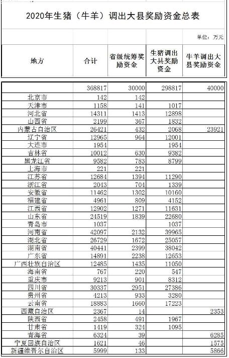 附件:1.2020年生豬(牛羊)調(diào)出大縣獎勵資金總表(不發(fā)地方)