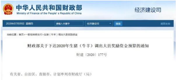 為促進生豬(牛羊)生產(chǎn)、流通,引導(dǎo)產(chǎn)銷有效銜接,保障市場供應(yīng),根據(jù)《財政部關(guān)于印發(fā)<生豬(牛羊)調(diào)出大縣獎勵資金管理辦法>的通知》(財建〔2015〕778號,以下簡稱《通知》)規(guī)定,現(xiàn)撥付你?。▍^(qū)、市)2019年生豬(牛羊)調(diào)出大縣獎勵資金(項目名稱:生豬(牛羊)調(diào)出大縣獎勵資金,項目代碼:Z155070000001),收入列2020年政府收支分類科目“1100299 其他一般性轉(zhuǎn)移支付收入”。具體金額詳見附件2。