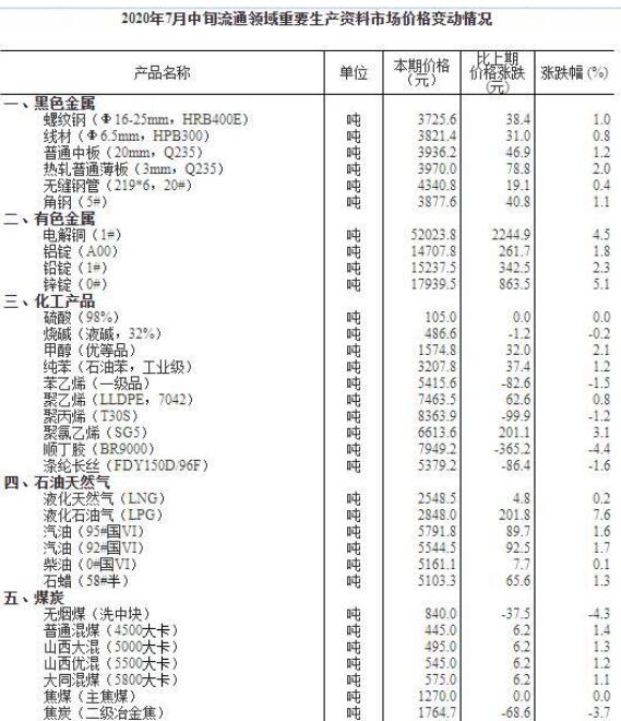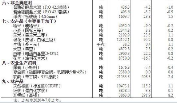 其中,7月中旬生豬(外三元)38.2元/千克,比7月上旬漲1.1%;大豆(黃豆)4872.8元/噸,比7月上旬漲0.2%。