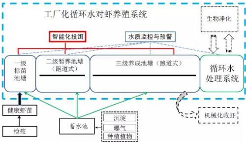 對(duì)蝦封閉式工廠化循環(huán)水養(yǎng)殖技術(shù)是以現(xiàn)代微生物技術(shù)(生物絮團(tuán)技術(shù))為基礎(chǔ),三階段跑道式養(yǎng)殖池工程化設(shè)施為支撐,高效循環(huán)水處理為依托,智能化精確控制為保障,實(shí)現(xiàn)全年高產(chǎn)、穩(wěn)產(chǎn)多造對(duì)蝦的現(xiàn)代工業(yè)化養(yǎng)殖技術(shù)體系,具備高密度養(yǎng)殖、零排放、飼料系數(shù)低、在線實(shí)時(shí)監(jiān)控、智能化調(diào)控與投餌、水循環(huán)利用達(dá)90%和產(chǎn)品優(yōu)質(zhì)健康等特點(diǎn)。近年來(lái),該養(yǎng)殖技術(shù)在我國(guó)南方地區(qū)進(jìn)行了養(yǎng)殖推廣應(yīng)用,結(jié)合已有的研究成果與養(yǎng)殖生產(chǎn)實(shí)踐均顯示對(duì)蝦封閉式工廠化循環(huán)水養(yǎng)殖具備高效性、安全性、經(jīng)濟(jì)性與實(shí)用性于一體,產(chǎn)業(yè)化前景十分廣闊。