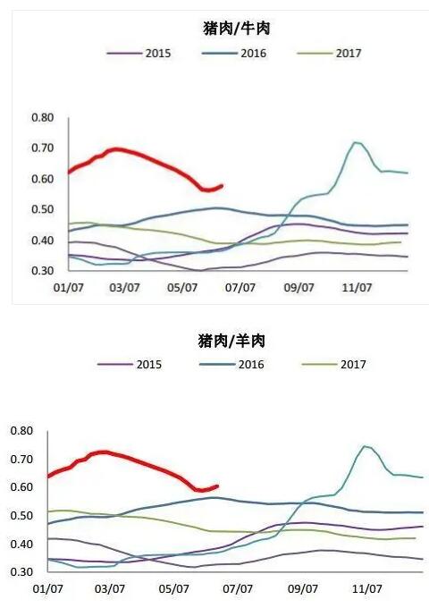 對于下半年生豬需求,我們將從單個角度去分析,一是自身價格對消費的影響,另一方面,從替代蛋白價格看。最后,從價格走勢季節(jié)性角度去考慮。