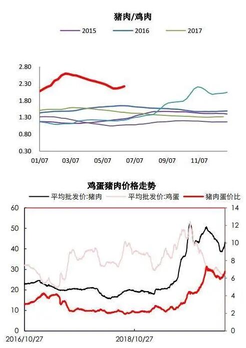 2、上半年低價替代品抑制豬肉需求,下半年價格抬升一定程度利多肉價