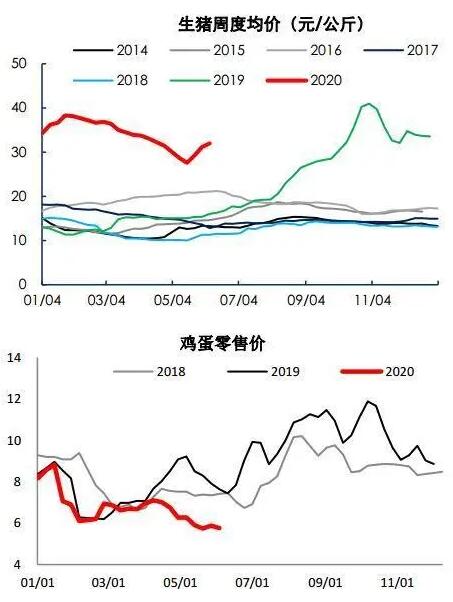 從替代品季節(jié)性價格走勢看,下半年牛羊肉及雞蛋價格均季節(jié)性走高,一定程度上提振生豬價格。