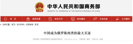 畢馬威分析師此前表示,對(duì)俄肉類(lèi)出口而言,中國(guó)市場(chǎng)最具潛力。如2024年前能夠取消所有出口限制,則俄每年對(duì)華肉類(lèi)產(chǎn)品出口額可達(dá)8.14億美元。