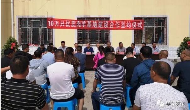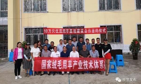 簽約現(xiàn)場,畢節(jié)市農(nóng)業(yè)農(nóng)村局、畢節(jié)市牛羊?qū)0?、赫章縣農(nóng)業(yè)農(nóng)村局、赫章縣興發(fā)鄉(xiāng)、畢節(jié)市肉牛產(chǎn)業(yè)協(xié)會等相關(guān)負(fù)責(zé)人聽取了兩個公司接下來的合作模式及運作模式介紹,見證了合作雙方簽訂協(xié)議,并從羊產(chǎn)業(yè)鏈發(fā)展的前端、中端和后端提出了許多寶貴的建議,希望兩個公司采取“公司+合作社+養(yǎng)殖戶”的模式,帶動當(dāng)?shù)剞r(nóng)民脫貧致富。