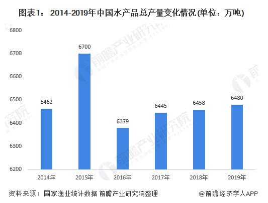 我國(guó)是世界上最大的水產(chǎn)養(yǎng)殖生產(chǎn)國(guó),水產(chǎn)品產(chǎn)量一直位于較高水平。根據(jù)國(guó)家漁業(yè)統(tǒng)計(jì)數(shù)據(jù)披露,2014-2019年,我國(guó)水產(chǎn)品總產(chǎn)量一直維持在6000萬(wàn)噸以上,自2015年迅速拔升后,2016年跌至6379萬(wàn)噸,隨后緩慢上升,至2019年實(shí)現(xiàn)6480萬(wàn)噸。