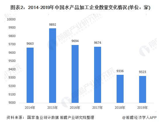 2014-2019年,我國(guó)水產(chǎn)品加工企業(yè)數(shù)量波動(dòng)下降,自2014年9663家降至9323家;水產(chǎn)品加工能力也呈現(xiàn)波動(dòng)變化的態(tài)勢(shì)。2017年,我國(guó)水產(chǎn)品加工能力達(dá)到峰值,實(shí)現(xiàn)2926萬(wàn)噸,隨著水產(chǎn)品加工企業(yè)數(shù)量的減少,2019年我國(guó)水產(chǎn)品加工能力降至2888萬(wàn)噸。