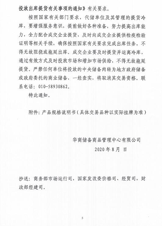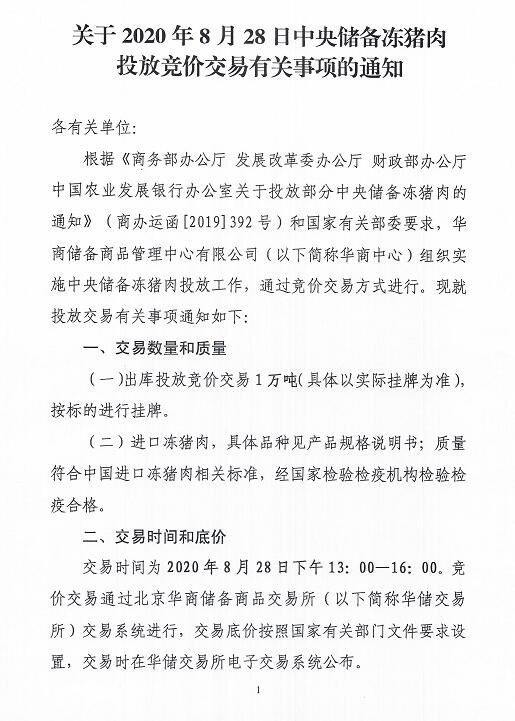 華儲網(wǎng):2020年8月28日中央儲備凍豬肉投放1萬噸