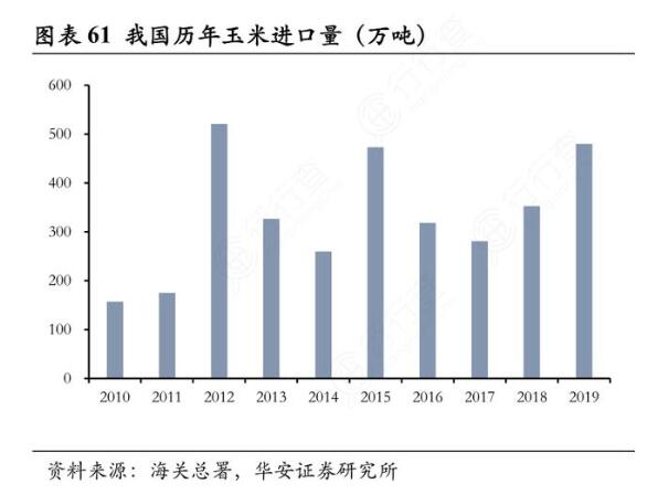 2010-2019年,我國玉米進(jìn)口量介于157-480萬噸之間,十年間玉米進(jìn)口量占國內(nèi)消費(fèi)的比例僅為1.42%,對(duì)外依存度非常低。具體從進(jìn)口國別和地區(qū)來看,我國最大的玉米進(jìn)口來源國是烏克蘭,2019年從烏克蘭進(jìn)口玉米數(shù)量占年度進(jìn)口量的86.2%,排名2、3位的分別是美國和老撾,各占6.6%和3.0%。
