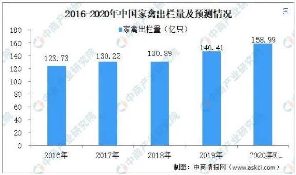 據(jù)國家統(tǒng)計局數(shù)據(jù)顯示:2019年全國家禽出欄146.41億只,比2018年增加15.51億只,增長11.9%;全國家禽存欄65.22億只,同比增加4.85億只,增長8.0%。據(jù)預(yù)測,2020年我國家禽出欄將近160億只。