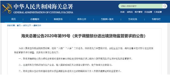 取消對出口水產(chǎn)品養(yǎng)殖場投喂的飼料來自經(jīng)海關(guān)備案的飼料加工廠的監(jiān)管要求。