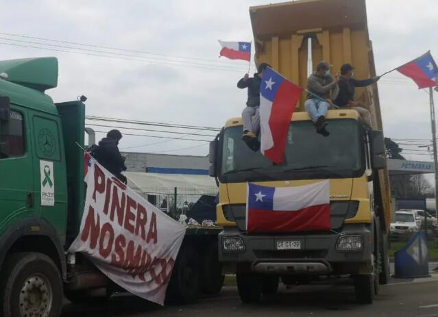 智利卡車司機(jī)封堵道路(圖:BioBio)