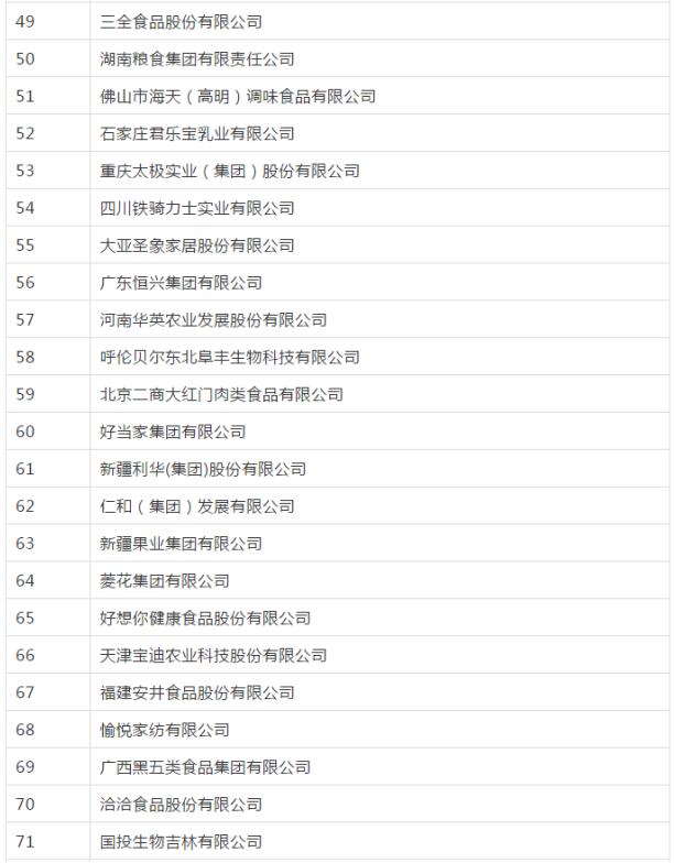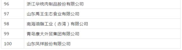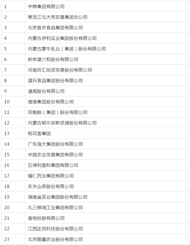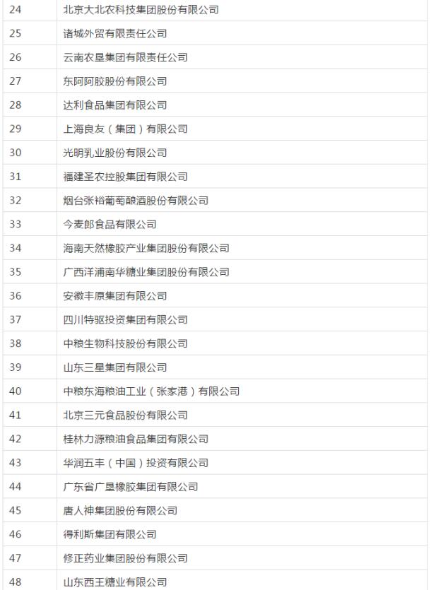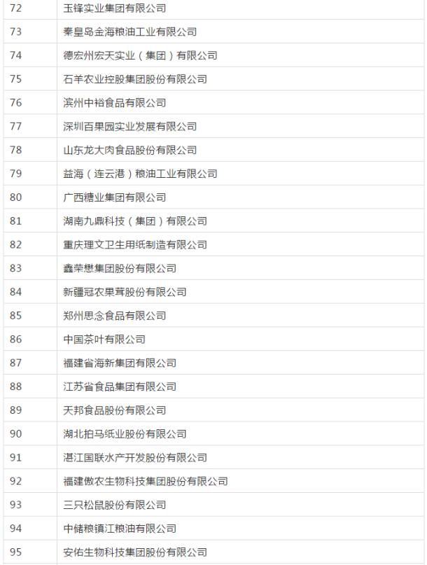 全國農(nóng)產(chǎn)品加工業(yè)100強(qiáng)企業(yè)名單