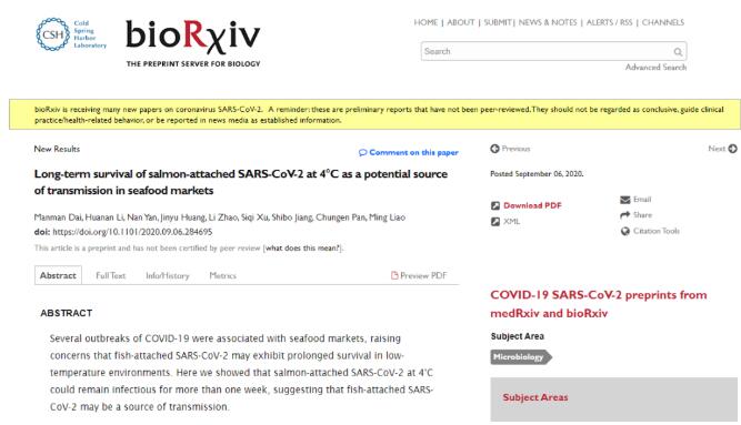 文章稱,在4攝氏度環(huán)境下,新型冠狀病毒附著三文魚上可存活一周以上,且仍具有感染性。因此,攜帶新冠病毒的三文魚可能是國(guó)際傳播源之一。包括彭博社(Bloomberg)、福克斯新聞(Fox News)在內(nèi)的多家國(guó)外主流媒體進(jìn)行了重點(diǎn)報(bào)道,文章亦被UCN轉(zhuǎn)譯。