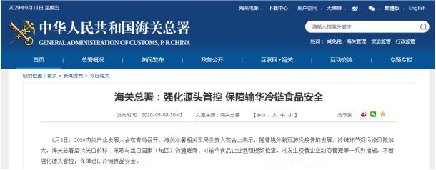 海關(guān)總署介紹,新冠肺炎疫情發(fā)生后,海關(guān)總署致函涉及輸華冷鏈食品的105個國家(地區(qū))的主管部門,并與有條件的國家(地區(qū))主管部門召開視頻會議,請其按照聯(lián)合國糧食及農(nóng)業(yè)組織(FAO)和世界衛(wèi)生組織(WHO)發(fā)布的相關(guān)指南要求,實施有效監(jiān)管;指導(dǎo)督促輸華食品企業(yè)落實FAO和WHO發(fā)布的對企業(yè)指南,加強員工防護,從源頭上防止新冠病毒污染食品和包裝,保證食品安全管理體系的有效運行。截至9月7日,海關(guān)總署與99個國家(地區(qū))召開視頻會議121次,中方的倡議得到了出口國的廣泛支持和響應(yīng)。