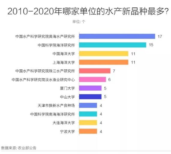 近年來水產(chǎn)龍頭企業(yè)也意識(shí)到水產(chǎn)新品種育種的重要性,紛紛加入,如海大集團(tuán)、恒興飼料、通威集團(tuán)、好當(dāng)家集團(tuán)。2010年以來,水產(chǎn)新品種育種單位共包含科研院所32個(gè),水產(chǎn)類高校23個(gè),水產(chǎn)推廣機(jī)構(gòu)20個(gè),水產(chǎn)類企業(yè)78個(gè)。