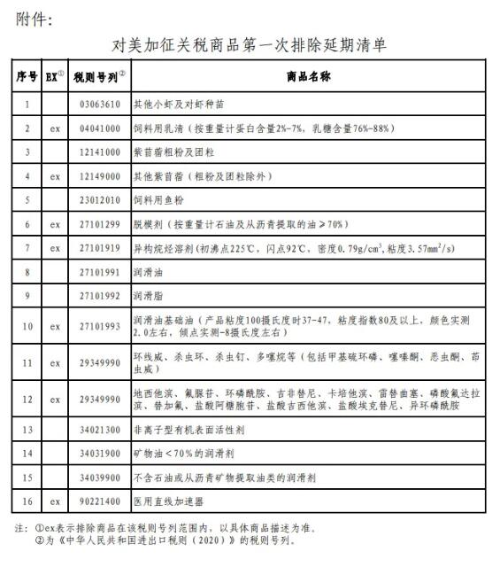 國(guó)務(wù)院關(guān)稅稅則委員會(huì)按程序決定,對(duì)部分商品延長(zhǎng)排除期限(如下表)。其中包括進(jìn)口種蝦、飼料用魚(yú)粉等水產(chǎn)養(yǎng)殖業(yè)相關(guān)產(chǎn)品。這批商品的關(guān)稅排除期限將延長(zhǎng)一年,即自2020年9月17日至2021年9月16日。