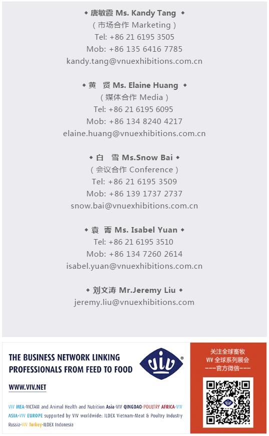 VIV Qingdao將加強打造更多聚焦行業(yè)熱點的國際高端論壇,打通各渠道資源,加強行業(yè)社群建設。目前,已和全球300多家專業(yè)媒體,200多家權(quán)威機構(gòu)建立了密切深入的合作,未來還將通過更多的活動和平臺將優(yōu)質(zhì)資源真正轉(zhuǎn)化為貿(mào)易價值。