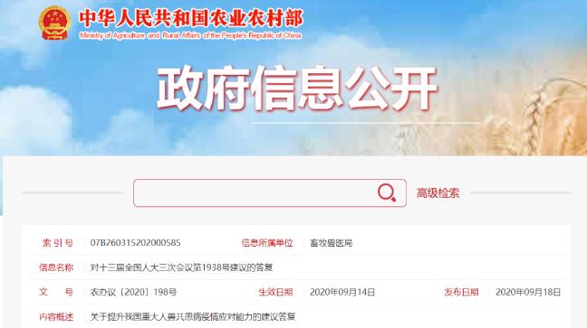 在第十三屆全國人大三次會議上,呼和巴特爾代表提出了關(guān)于提升我國重大人獸共患病疫情應(yīng)對能力的建議(第1938號建議),經(jīng)商國家衛(wèi)生健康委,農(nóng)業(yè)農(nóng)村部現(xiàn)答復(fù)如下。