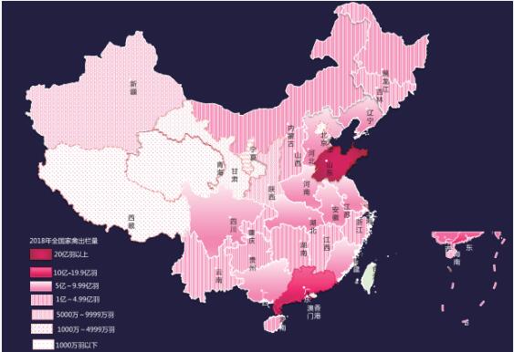 圖2 2018年全國家禽出欄量分布