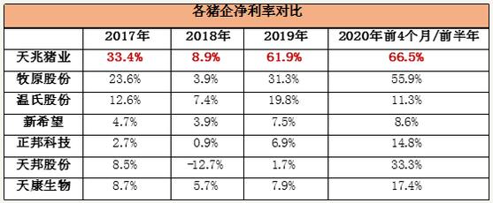 (注:天兆豬業(yè)2020年凈利率為前四個(gè)月數(shù)據(jù),其余公司為2020年上半年)