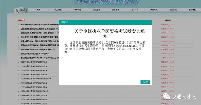 (上圖為全國(guó)執(zhí)業(yè)獸醫(yī)資格考試網(wǎng)上信息平臺(tái)彈窗截圖)