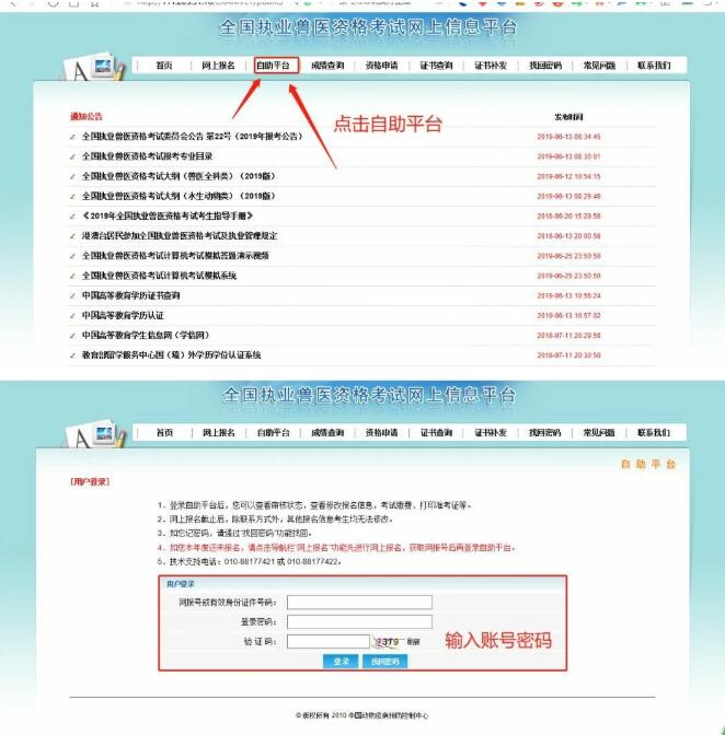 點(diǎn)擊自助平臺(tái)--輸入身份證(或網(wǎng)報(bào)號(hào))、密碼、驗(yàn)證碼---登錄自助平臺(tái)