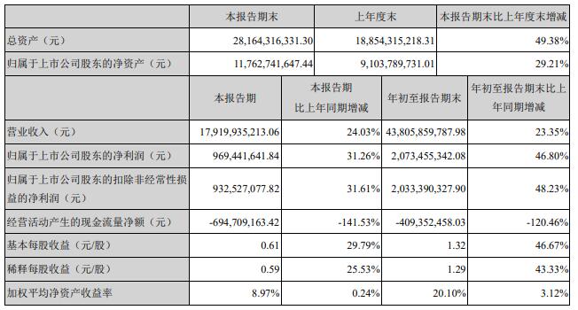 海大集團10月27日公布2020年前三季度業(yè)績報告。公司2020年1-9月實現(xiàn)營業(yè)收入438.06億元,同比增長23.35%,歸屬于上市公司股東的凈利潤為20.73億元,同比增長46.80%;其中,第三季度公司實現(xiàn)營業(yè)收入179.20億元,同比增長24.03%,歸屬于上市公司股東的凈利潤為9.69億元,同比增加31.26%。