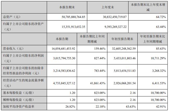 正邦科技10月27日公布2020年前三季度業(yè)績報告。公司前三季度營收326.05億元,同比增長85.63%;凈利潤54.33億元,同比增長10711.29%。其中,第三季度營收160.54億元,同比增長159.46%,凈利30.16億元,同比增長827.44%。