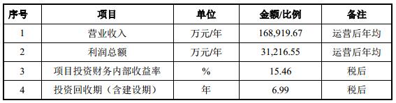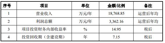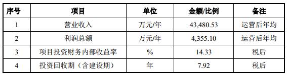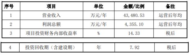 (6)建設(shè)周期及預(yù)計效益:本項目建設(shè)期為1年,主要財務(wù)效益指標測算情況如下: