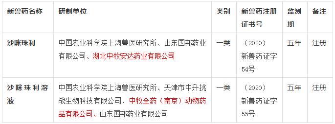 近日,中牧股份化藥板塊獲得農(nóng)業(yè)農(nóng)村部頒發(fā)的兩項(xiàng)國(guó)家一類新獸藥證書——沙咪珠利((2020)新獸藥證字54號(hào))和沙咪珠利溶液((2020)新獸藥證字55號(hào))。這是繼喹烯酮、海南霉素之后,中牧化藥板塊擁有的第三、第四個(gè)國(guó)家一類新獸藥,也是近5年來化藥板塊再次獲頒國(guó)家一類新獸藥證書。